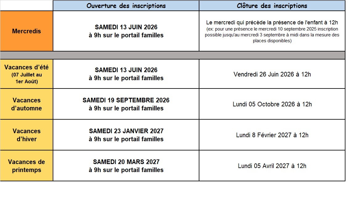 | Vacances Scolaires | Les mercredis | Hors vacances Scolaires |