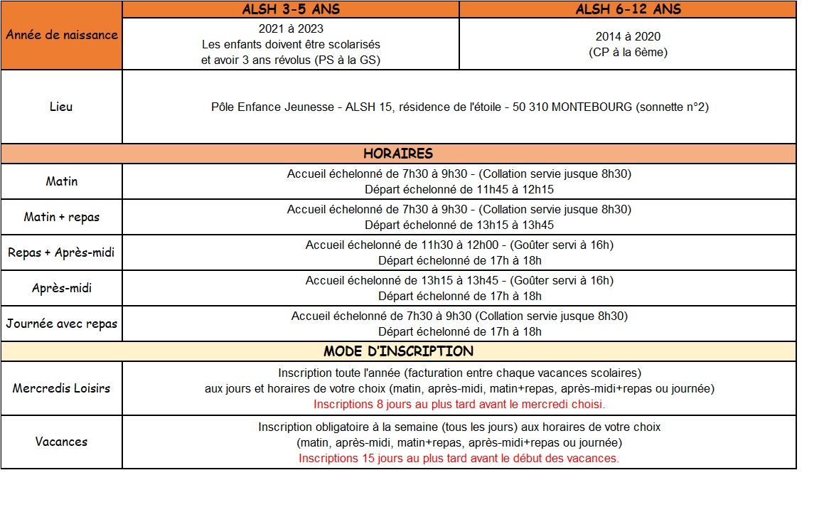 - Moyens de paiement acceptés : chèques à l’ordre de Régie ALSH Montebourg, espèces, ANVC, virement bancaire ou via le portail famille (CB).